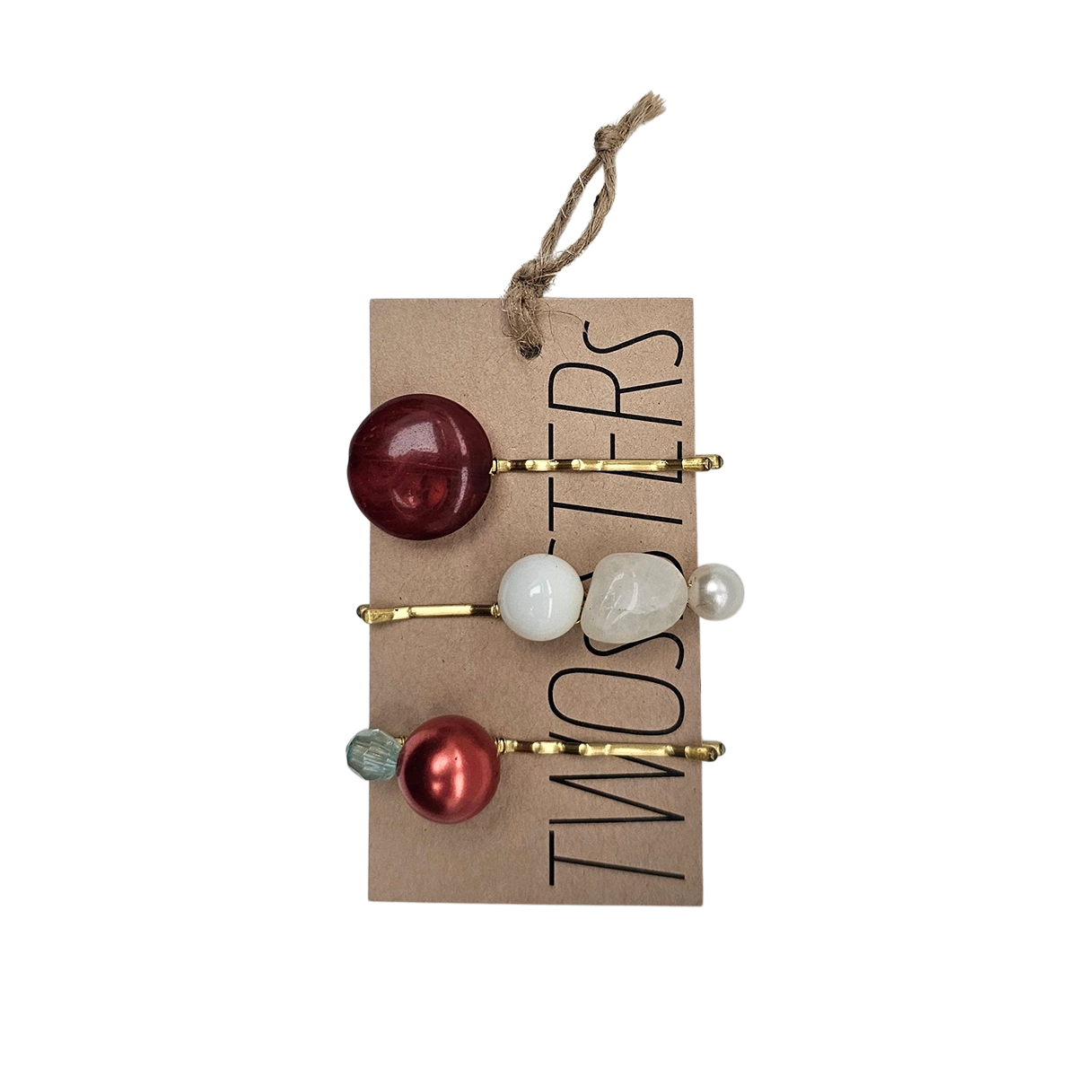 Husk på, at den er håndlavet, og alle perler har haft andet liv og bærer rundt på en historie. Der vil derfor være små forskelligheder fra hårnål til hårnål.