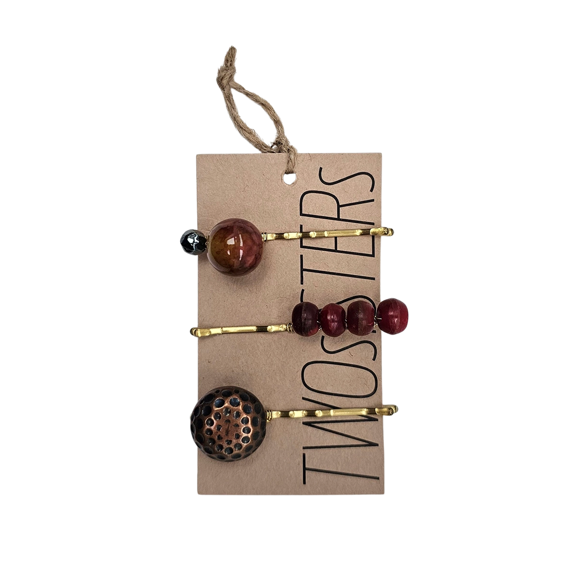 Husk på, at den er håndlavet, og alle perler har haft andet liv og bærer rundt på en historie. Der vil derfor være små forskelligheder fra hårnål til hårnål.